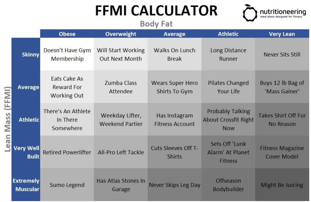 The FFMI (fat free mass index) calculator quantifies muscularity relative to body size. See if you're in shape compared to [...]